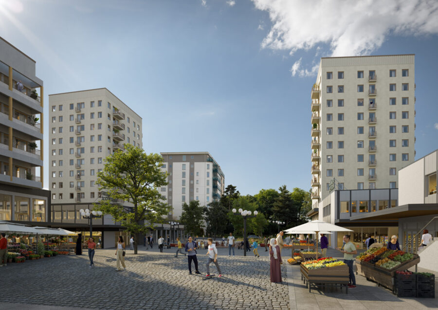 | Övrigt | Detaljplanen är för närvarande ute på samråd. Målet är ett mer levande stadsdelscentrum med bättre flöden, tydligare mötesplatser och långsiktigt robusta offentliga rum. |